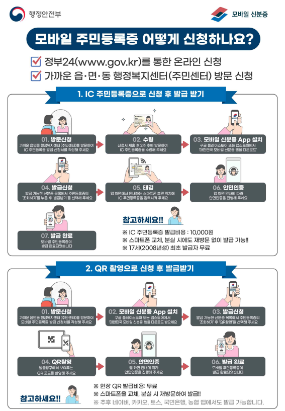 - IC 주민등록증을 스마트폰에 접촉하여 발급